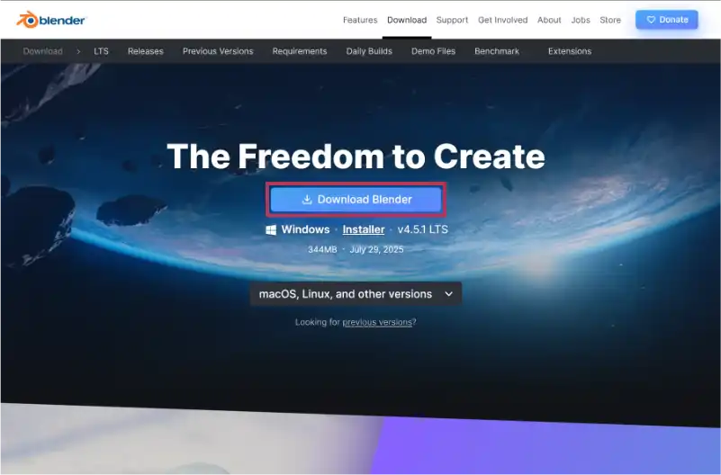 STEP2:Blender公式サイトからインストーラーをダウンロード