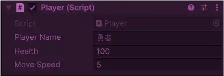 publicにするか[SerializeField]属性を付けることで、Unityエディタのインスペクターに表示され、そこから値を調整できるようになります。