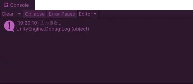 Debug.Log("力尽きた...");