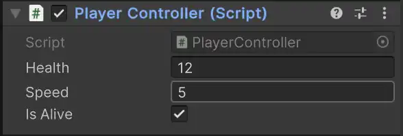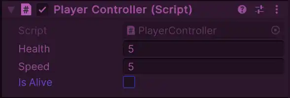再生(▶)にし、今回はHealthのパラメータを5、Is Aliveのチェックを外しました。
